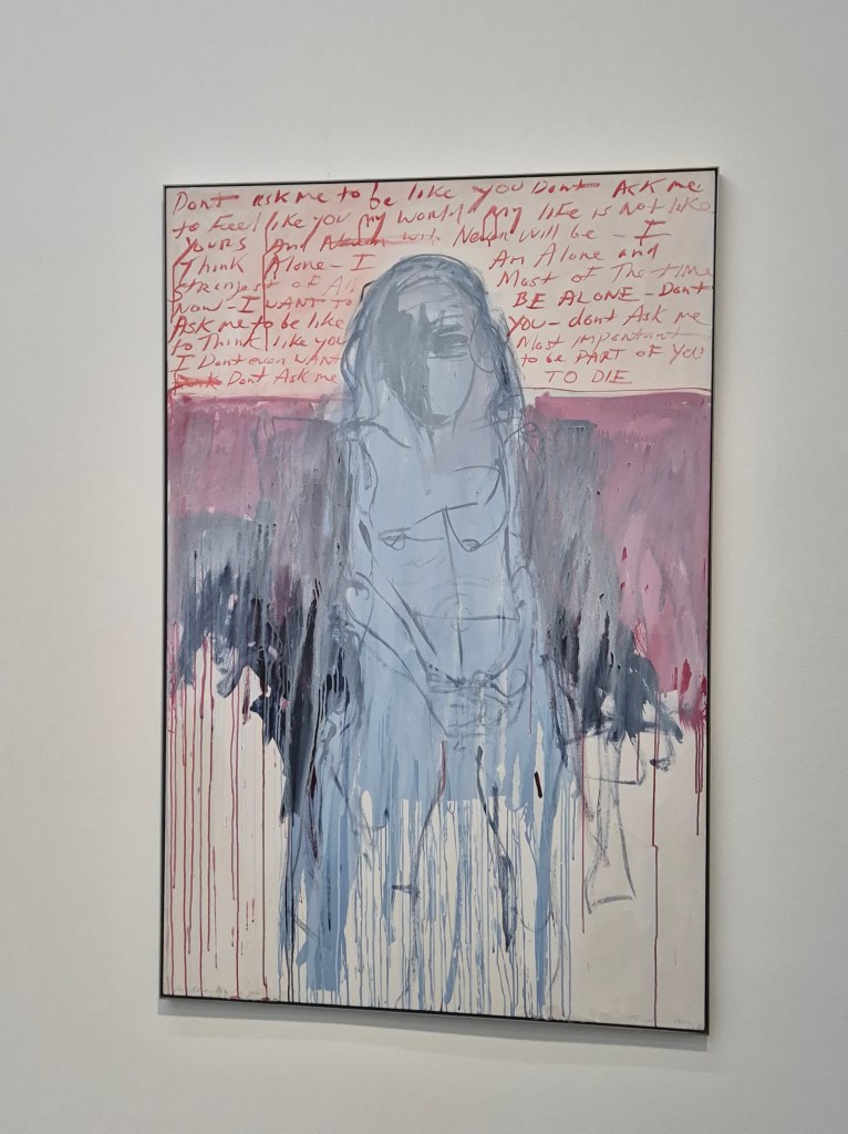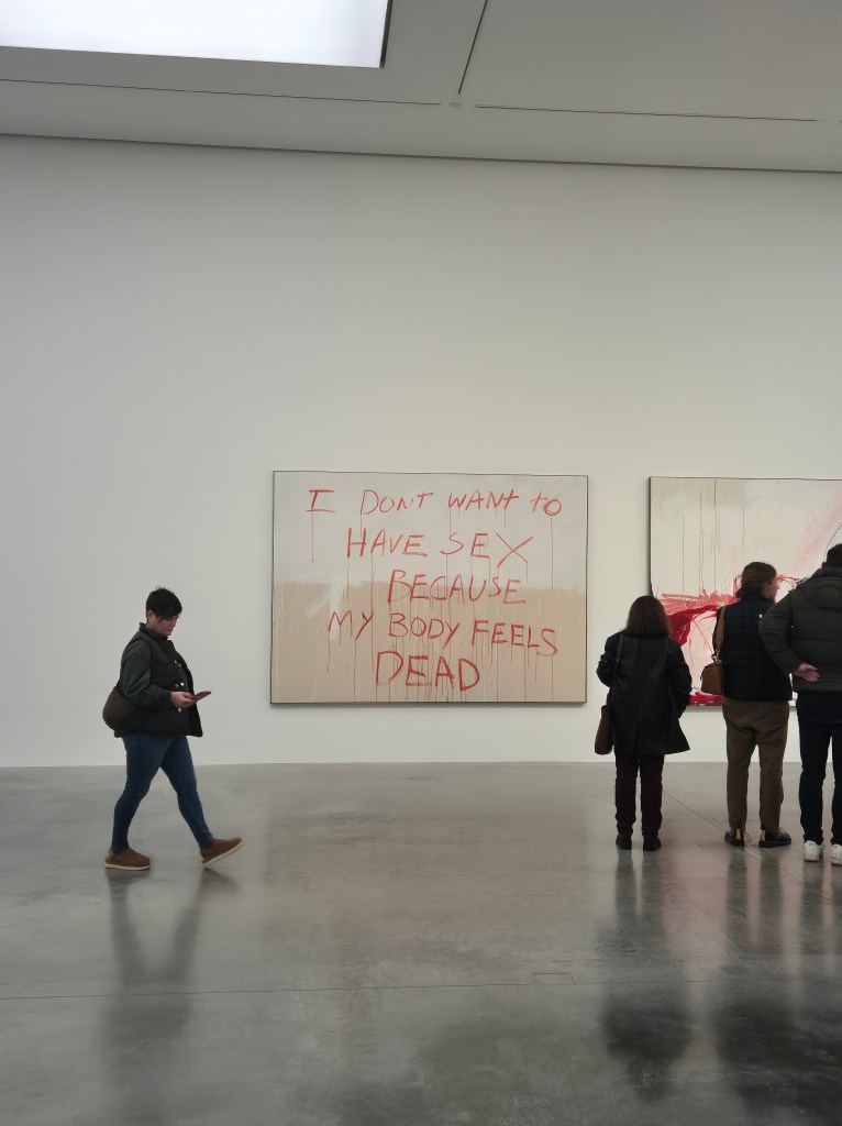 Pain. Illness. Mortality. Death. Emin’s latest exhibition is dominated by expressive paintings, largely of figures in bed. Big in size and clearly rendered quickly, almost like painted sketches, with layers of urgent mark-making leaving areas of primed white canvas in the background. She mostly uses red and blue, or a mixture of the two, to make various shades of purple, giving the images a real sadness and poignancy. I was profoundly affected by these works – their honesty and vulnerability was at the very forefront of the image, the way each image was created, and how they were hung.
