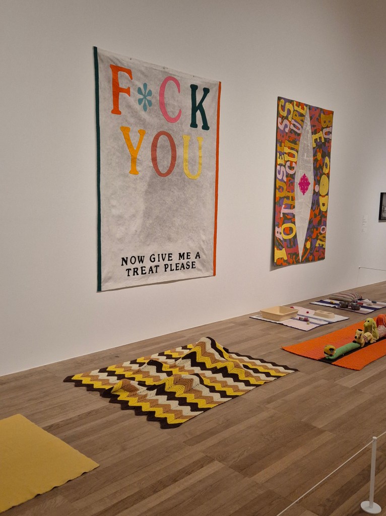 The other two pieces I enjoyed were the sweary banners, stark and aggressive: unapologetic. And his pink curtain from the ExtraCurricular Activity section – so much drama, unsettling, awe-inspiring and really beautiful.