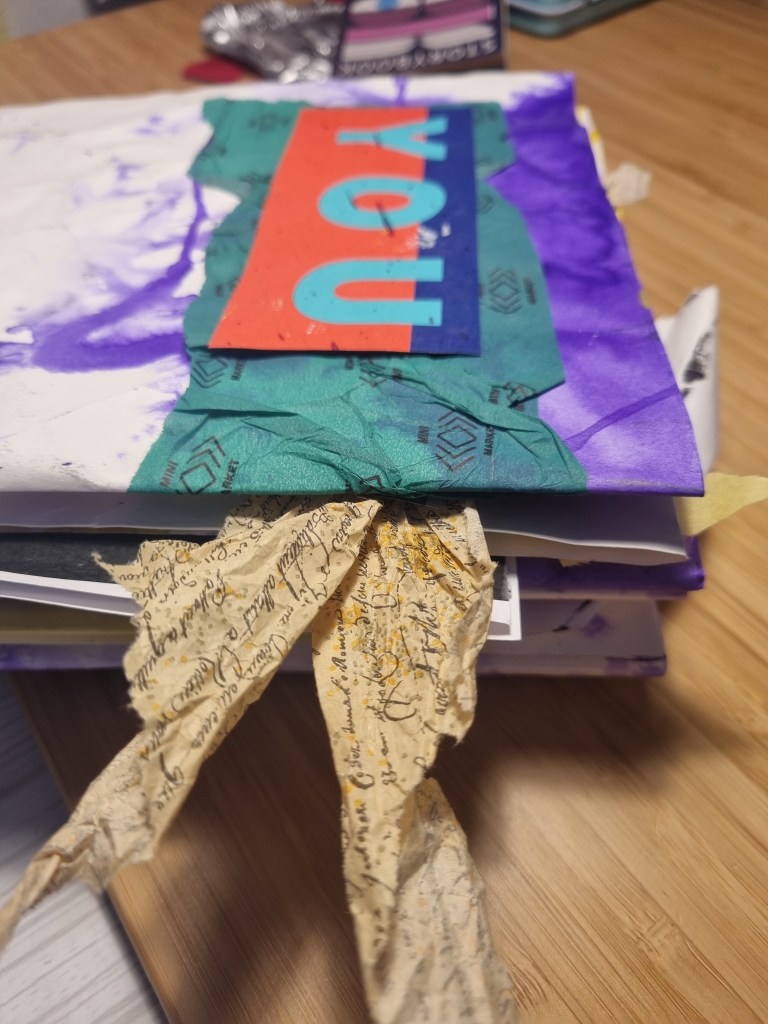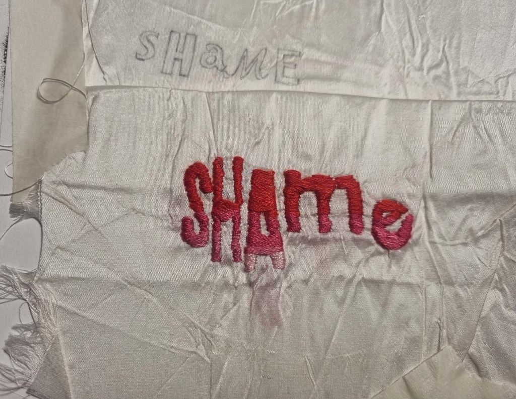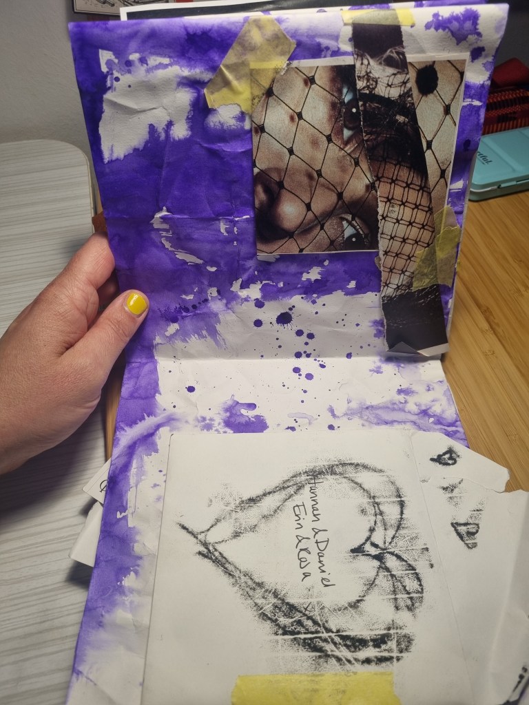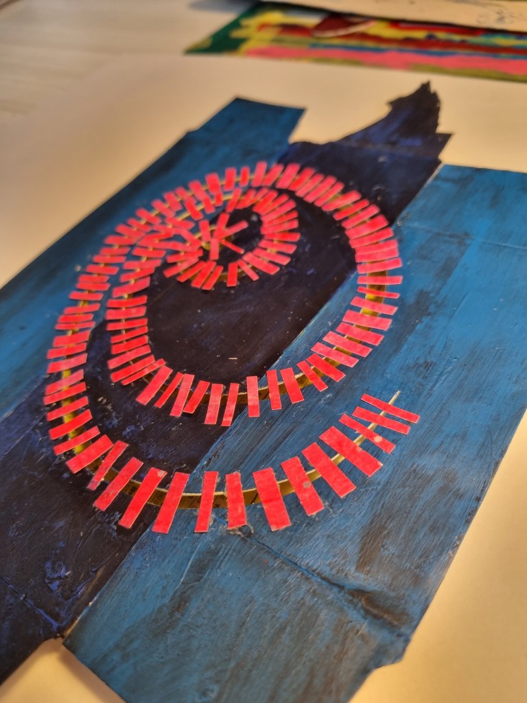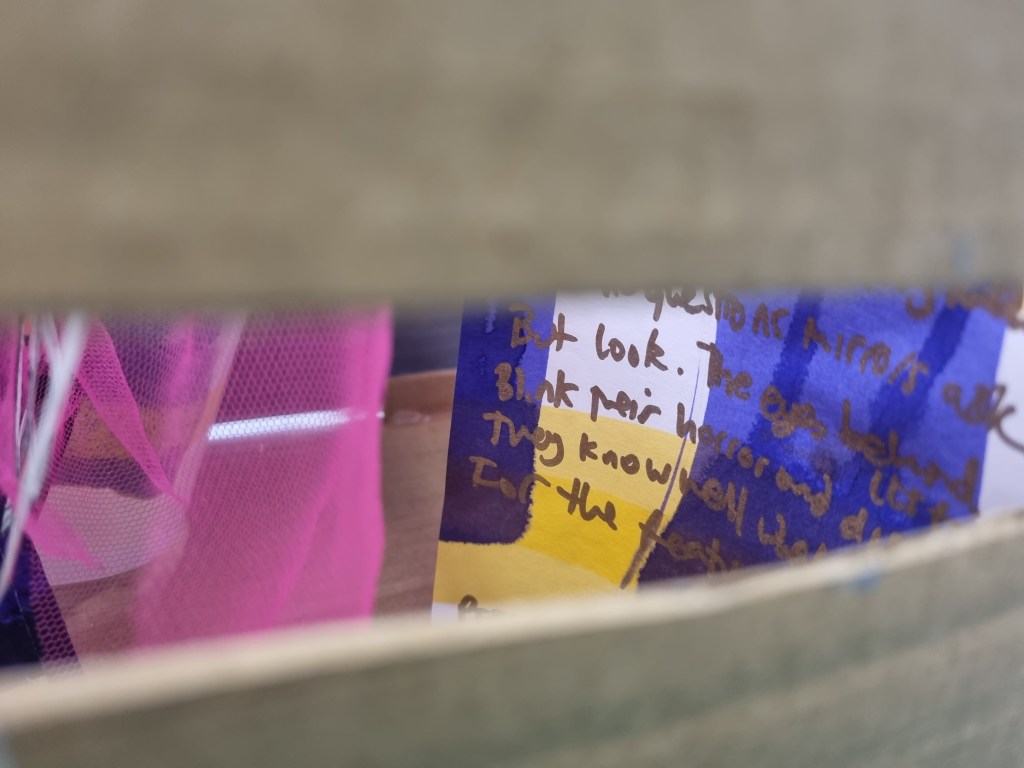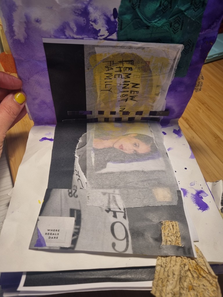 ‘Seeds’, 2024 (Cyanotype, cotton, wool, rice)‘Water scratch’ edition of 13, ink, collage, 2023‘Spiral’ card and paint 2023Sketchbooking, 2024‘Why so po-faced?’ card and paper, 2024‘Shipshape and Bristol fashion’ Tabard top, screenprinted and hand embroidered, 2014